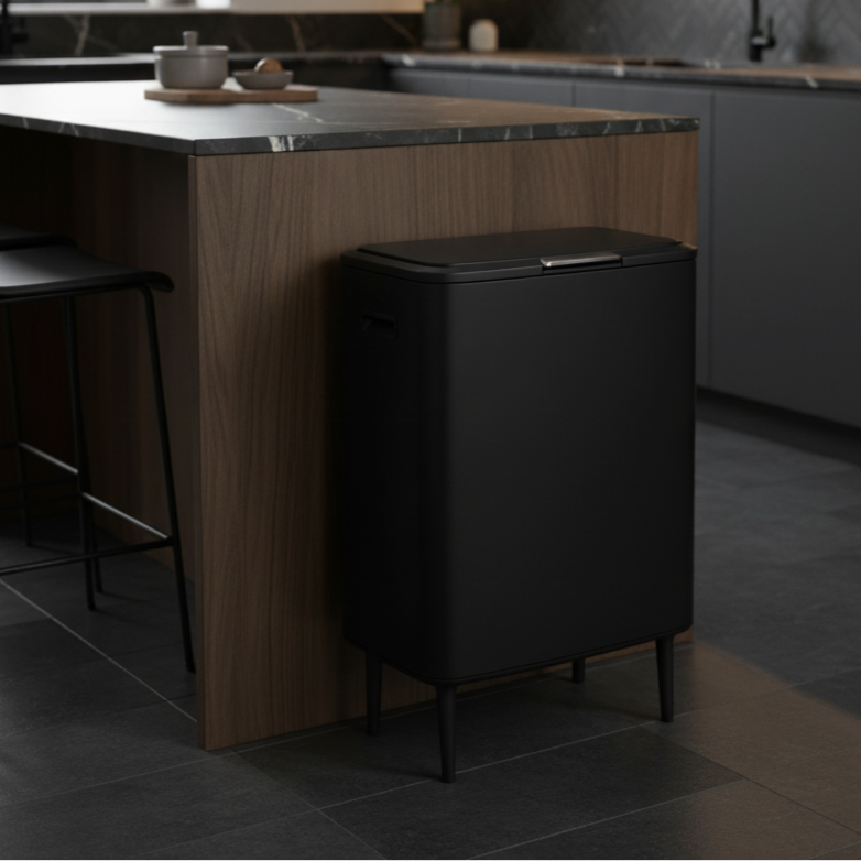 עיצוב הפח של ARLI משלב נירוסטה איכותית עם גימור עמיד בפני טביעות אצבעות, המשתלב בכל סגנון עיצובי. המכסה החלק נע בתנועה רכה ושקטה, והפרופורציות המדויקות מאפשרות לפח להשתלב בחללים קטנים בלי להתפשר על נפח.